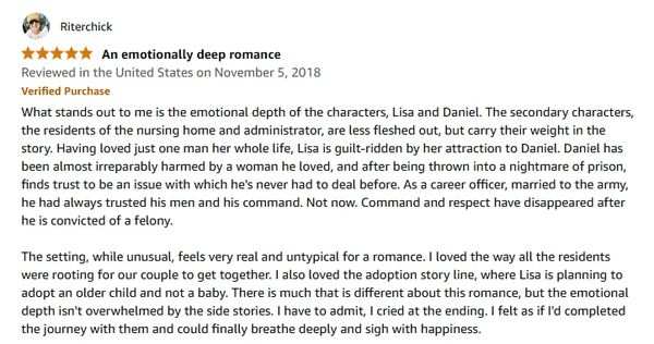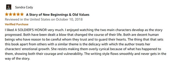 As you can see, I don't stick with one genre. My last three books can be classified as historical inspirational romances and involve the Fletcher family in Independence, MO. I love using children, teens and the elderly in my stories, and I even have one set in a nursing home. Check out A SOLDIER'S HONOR.